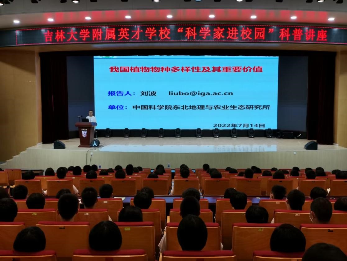 活動當(dāng)天,吉林大學(xué)附屬英才學(xué)校近200名師生參加了此次科普講座。劉波博士采用圖文并茂的方式,從生物多樣性的定義講起,重點介紹了我國植物物種多樣性,結(jié)合多年積累的濕地植物圖件,分別講解了苔蘚植物、蕨類植物、裸子植物和被子植物的特征。最后,通過“屠呦呦先生發(fā)現(xiàn)青蒿素”、“袁隆平先生發(fā)現(xiàn)水稻天然雄性不育株”、“孟德爾遺傳定律”等生動案例,闡釋了植物多樣性的價值,及保護生物多樣性的重要意義。