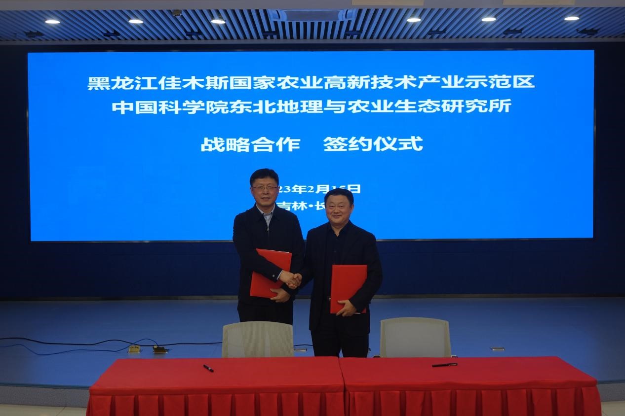 佳木斯國家農(nóng)高區(qū)建設(shè)領(lǐng)導(dǎo)小組副組長李源波一行調(diào)研東北地理所并簽署合作協(xié)議