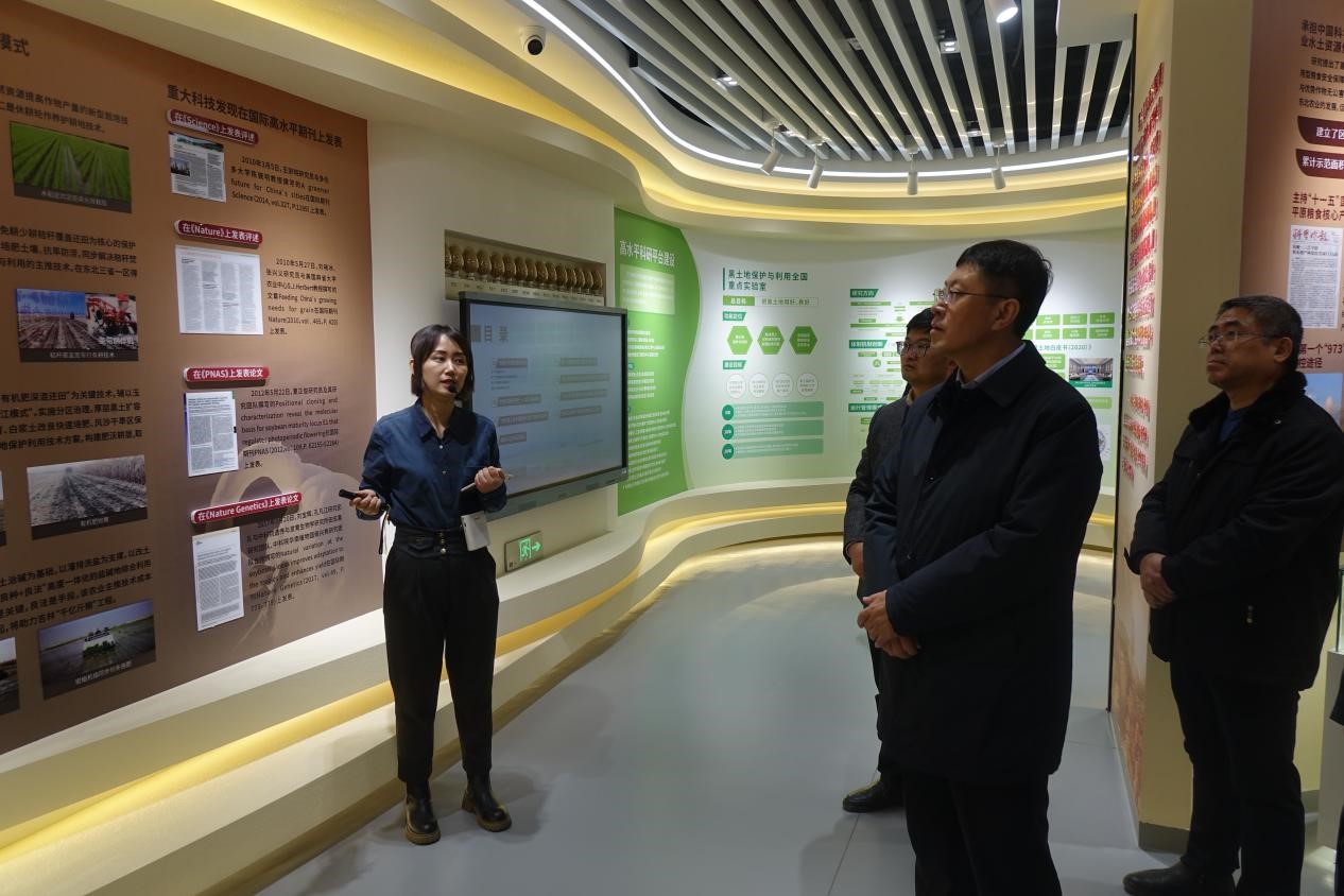 隨后參觀了“黑土糧倉”科技會(huì)戰(zhàn)指揮中心宣傳展示平臺(tái),辦公室副主任殷麗婭對(duì)研究所歷史沿革、基本概況、科研項(xiàng)目、人才智庫、平臺(tái)建設(shè)、黨建創(chuàng)新等方面內(nèi)容進(jìn)行了講解。