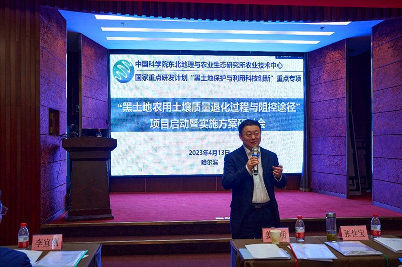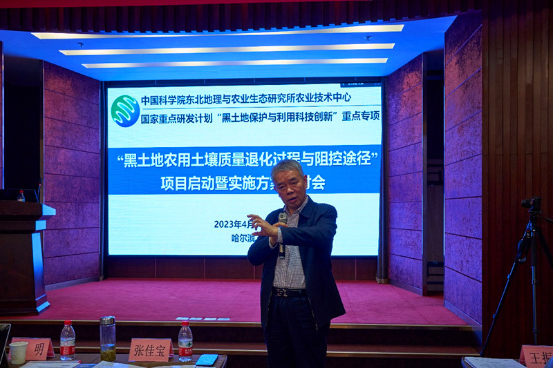 4月13日,由中國(guó)科學(xué)院東北地理與農(nóng)業(yè)生態(tài)研究所農(nóng)業(yè)技術(shù)中心牽頭承擔(dān)的國(guó)家重點(diǎn)研發(fā)計(jì)劃“黑土地保護(hù)與利用科技創(chuàng)新”重點(diǎn)專(zhuān)項(xiàng)“黑土地農(nóng)用土壤質(zhì)量退化過(guò)程與阻控途徑”項(xiàng)目啟動(dòng)會(huì)在哈爾濱舉行。出席會(huì)議領(lǐng)導(dǎo)有黑土地專(zhuān)項(xiàng)跟蹤專(zhuān)家組中國(guó)科學(xué)院南京土壤研究所張佳寶院士,中國(guó)農(nóng)村技術(shù)開(kāi)發(fā)中心王振忠和孟慶峰項(xiàng)目專(zhuān)員,中國(guó)科學(xué)院科技促進(jìn)發(fā)展局農(nóng)業(yè)科技辦公室曾艷副研究員,黑龍江省科學(xué)技術(shù)廳農(nóng)村科技處李宜剛處長(zhǎng)和劉淑艷二級(jí)調(diào)研員,中國(guó)科學(xué)院東北地理所所長(zhǎng)姜明、副所長(zhǎng)王宗明,農(nóng)業(yè)技術(shù)中心科研計(jì)劃與財(cái)務(wù)處處長(zhǎng)劉俊杰,項(xiàng)目、課題負(fù)責(zé)人及項(xiàng)目相關(guān)人員50余人參加此次會(huì)議。會(huì)議由王宗明副所長(zhǎng)主持。