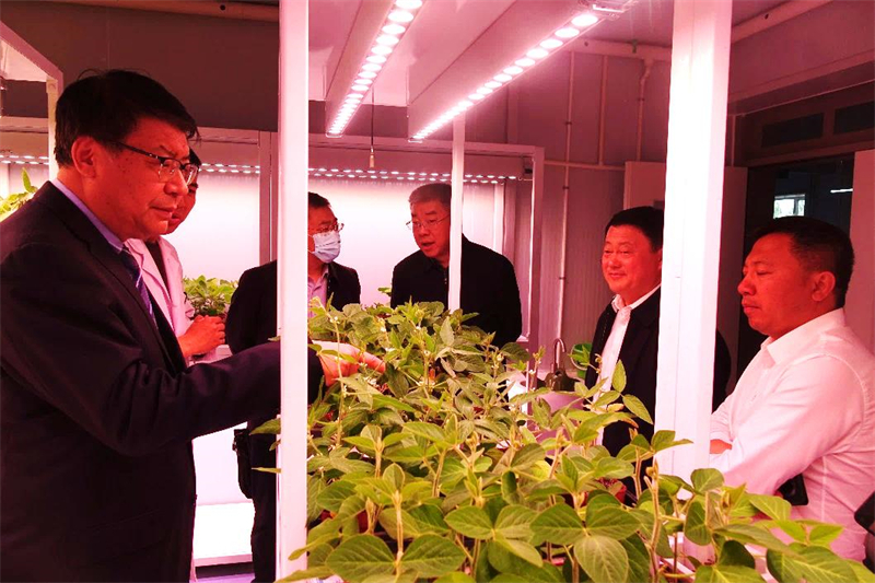 調(diào)研組首先深入到東北亞種質(zhì)資源研究中心,大豆分子設(shè)計育種重點(diǎn)實(shí)驗(yàn)室程志遠(yuǎn)博士介紹了實(shí)驗(yàn)室的組織構(gòu)架、主要研究方向、人才隊伍概況,以及在國內(nèi)率先建成大豆分子設(shè)計育種技術(shù)體系和最大容量的大豆基因突變體庫的情況,還詳細(xì)介紹了吉林省最大規(guī)模的高通量自動化智能作物表型采集平臺,匯報了大豆新品種的選育和示范推廣有力支撐國家大豆產(chǎn)能提升工程等工作進(jìn)展。