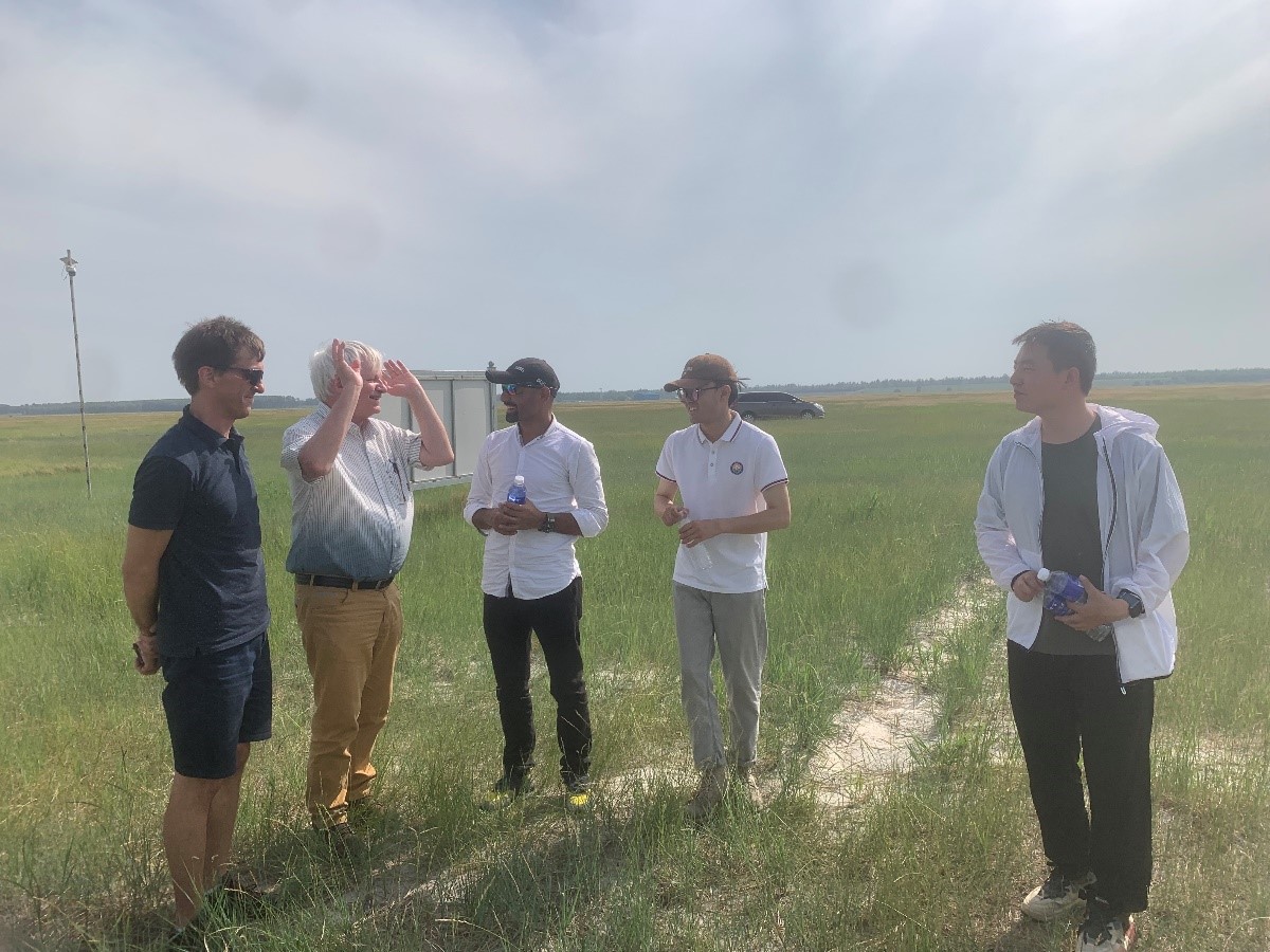 在報告和學術交流中,Mathias N. Andersen教授和Kiril Manevski教授分別向科研人員介紹了他們的研究成果和最新的科研進展,博士生Taza Gul介紹了他即將開展的科學研究。黃迎新研究員全面介紹研究團隊近些年從事的鹽堿地改良、草地生產力提升等領域的研究內容,雙方對相關的研究內容進行了深入的互動和交流。下午,Mathias N. Andersen教授等一行來到黑土糧倉科技會戰(zhàn)大安示范區(qū)中科院長嶺草地農牧業(yè)生態(tài)研究站,對野外實驗平臺進行實地考察。在草地極端降水實驗平臺和鹽堿旱田改良試驗區(qū),聽取科研人員對相關實驗的介紹,并對野外實驗平臺下一步的科學研究提出具有指導性的意見和建議。
