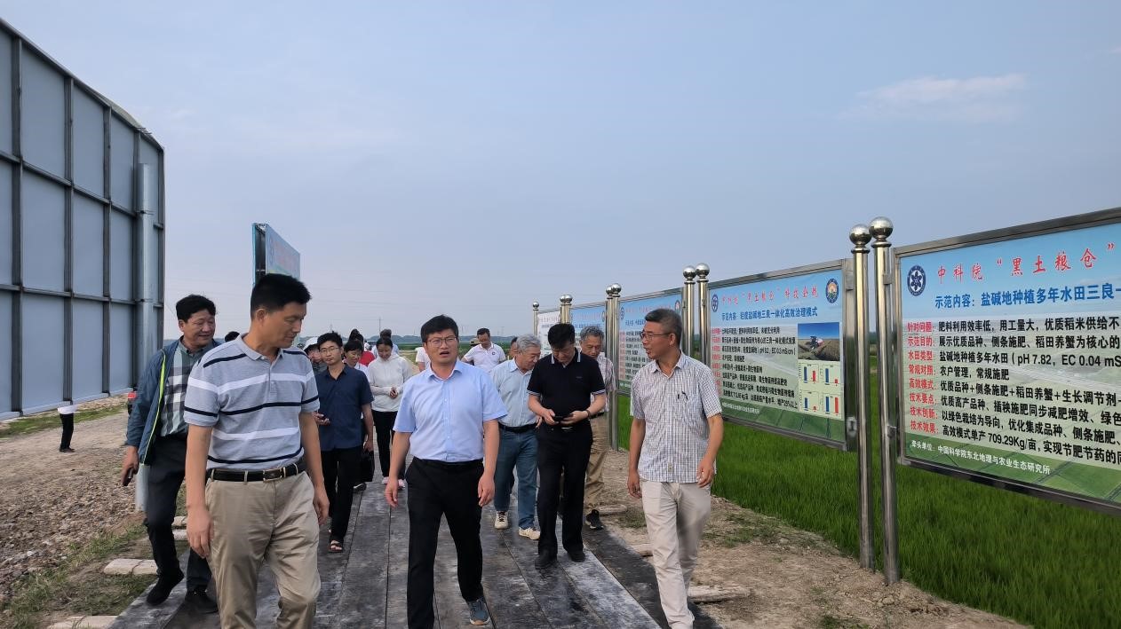 7月7日下午,監(jiān)理調(diào)研組一行來到鹽堿地水田以稻治堿改土增糧示范基地,水田模式負(fù)責(zé)人王明明副研究員詳細(xì)匯報(bào)了大安鹽堿地水田萬畝示范區(qū)開展的以磷石膏+東稻122+密植栽培為核心的三良一體化高效治理模式工作進(jìn)展。針對(duì)輕、中、重度鹽堿地以及種植多年鹽堿水田存在的技術(shù)問題及需求,介紹了2023年新開展的磷石膏+有機(jī)肥、無人插秧、有序拋秧、側(cè)深施肥、微生物菌肥施用、精準(zhǔn)變量施肥等新技術(shù),以及東稻211、東稻812等耐鹽堿水稻品種篩選情況。