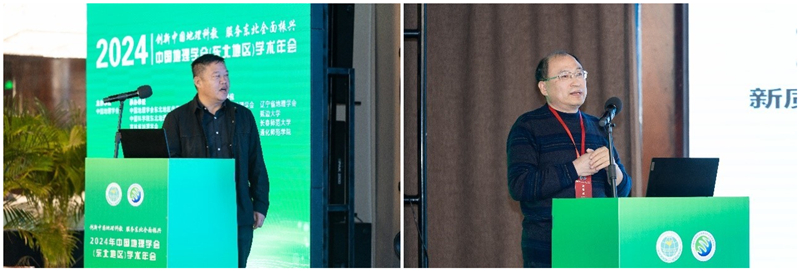 第二階段的會議主旨報告會由東北師范大學地理科學學院院長白娥教授主持。中國科學院青藏高原研究所副所長李新研究員、中國科學院新疆生態(tài)與地理研究所副所長孫福寶研究員、中國科學院地理科學與資源研究所李召良研究員、東北師范大學楊青山教授、遼寧師范大學孫才志教授、中國科學院東北地理所姜明研究員分別以中國冰凍圈變化、融合深度學習與物理模型的全球洪水模擬與風險預估、全球土地覆被變化生物物理反饋的溫度效應、基于承接產業(yè)轉移視角的經濟欠發(fā)達城市存量用地治理對策、關于加快形成海洋經濟新質生產力、黑土地保護中的地理學問題為主題作大會報告。