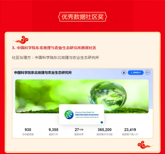 東北地理所數(shù)據(jù)社區(qū)榮獲第三屆“ScienceDB科學(xué)數(shù)據(jù)獎(jiǎng)”優(yōu)秀數(shù)據(jù)社區(qū)