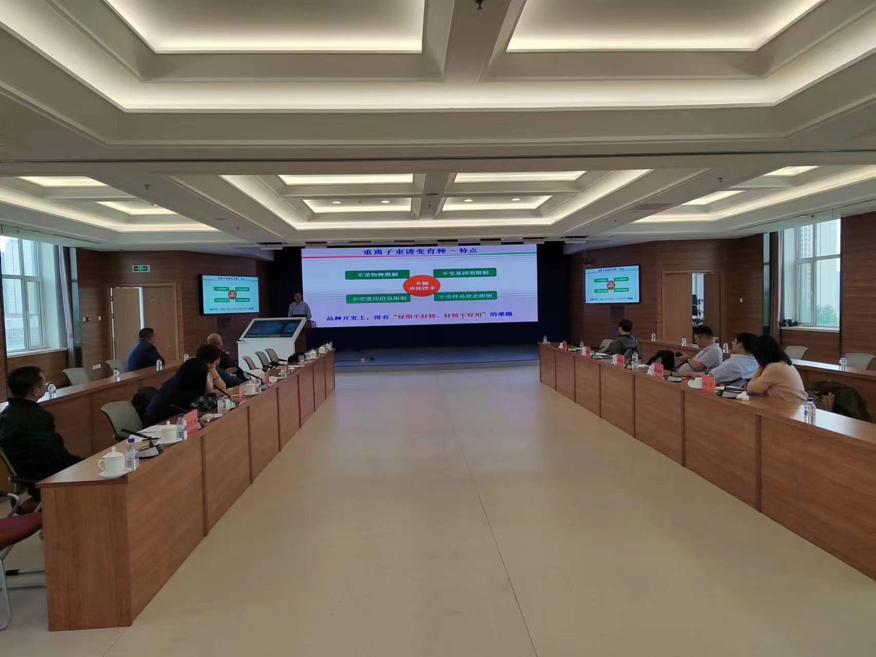 座談會上,姜明對胡正國一行表示熱烈歡迎,感謝近代物理所對東北地理所在水稻、大豆和羊草等育種領域的支持和幫助,表示未來將與近代物理所和中國科技大學國家同步輻射實驗室開展更加深入的科研合作。胡正國介紹了近代物理所重離子加速器大科學裝置的研究現(xiàn)狀和多學科重大科技創(chuàng)新成果,并強調(diào)重離子束輻射誘變育種及種質(zhì)資源創(chuàng)制研究是重離子加速器大科學裝置的重要研究方向,也是與東北地理所合作的重要研究領域。