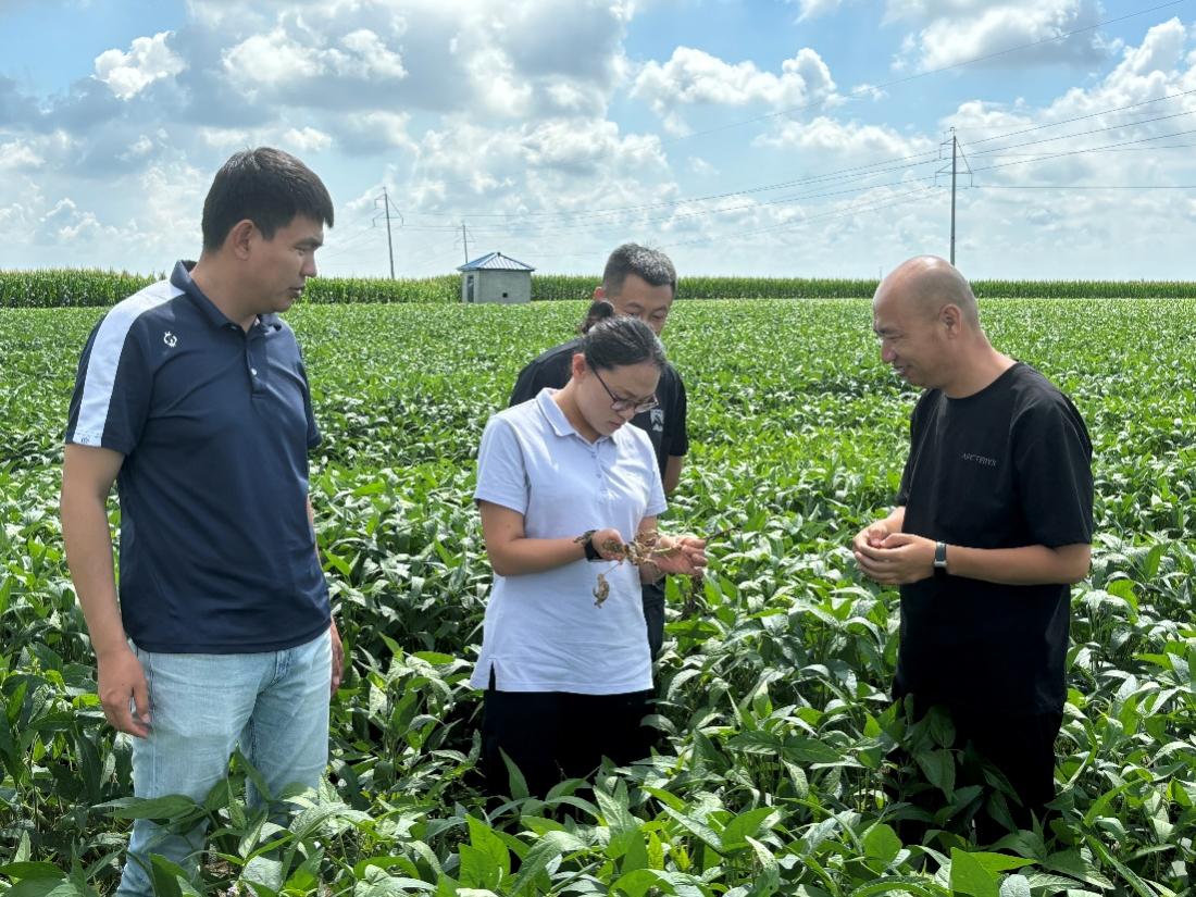當(dāng)前東北春大豆正處于產(chǎn)量形成的關(guān)鍵時期,為了積極應(yīng)對未來可能出現(xiàn)的氣象不利條件,在農(nóng)業(yè)農(nóng)村部總體部署下,7月30日,國家大豆產(chǎn)業(yè)技術(shù)體系海倫綜合試驗站首席專家鄒文秀研究員聯(lián)合東北早熟品種改良崗位科學(xué)家韓英鵬教授和巴彥縣農(nóng)業(yè)技術(shù)推廣中心相關(guān)科技人員深入巴彥縣巴彥港鎮(zhèn)開展“抓秋田抗災(zāi)害奪秋糧”科技支撐服務(wù),對田間土壤含水量、大豆長勢、病蟲草害發(fā)生風(fēng)險等進(jìn)行調(diào)研,并提出“抓秋田抗災(zāi)害奪秋糧”技術(shù)指導(dǎo)方案。