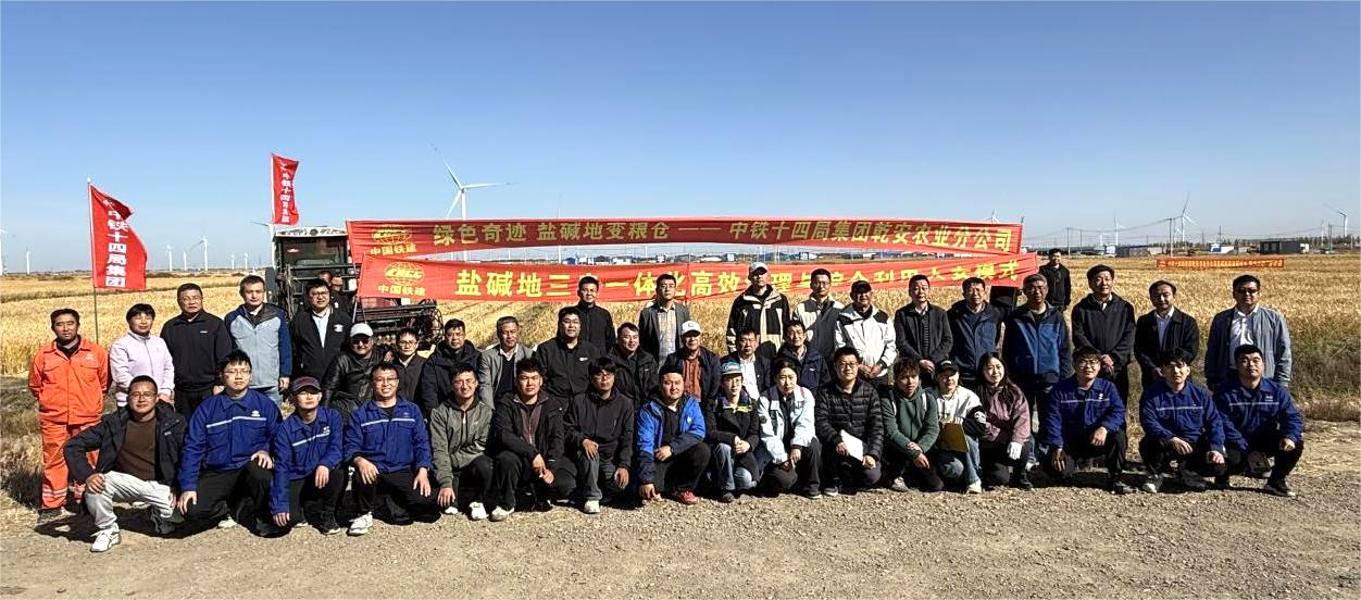 為進(jìn)一步推進(jìn)鹽堿地“三良一體化”高效治理與綜合利用大安模式的推廣應(yīng)用,吉林大安農(nóng)田生態(tài)系統(tǒng)國家野外科學(xué)觀測研究站團(tuán)隊與中鐵十四局集團(tuán)有限公司聯(lián)合于乾安水字鎮(zhèn)鹽堿地治理項目區(qū)建立試驗(yàn)示范基地。10月11日,大安站與中鐵十四局乾安分公司聯(lián)合在乾安示范基地成功召開了新墾鹽堿地“三良一體化”高效治理與綜合利用專家測產(chǎn)現(xiàn)場觀摩會。