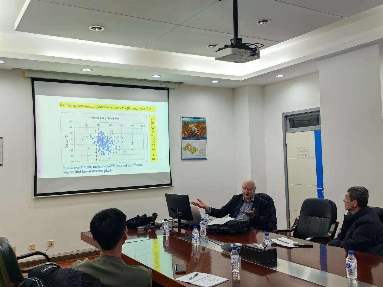 報(bào)告會上,Cory Matthew教授分別從植物分蘗大小和密度之間的補(bǔ)償、種子頭為下一季嫩芽提供營養(yǎng)、植物分蘗形態(tài)影響根系生長季節(jié)性、植物耐旱性等四個方面介紹了他的研究成果和最新的科研進(jìn)展。報(bào)告結(jié)束后,Cory Matthew教授與參會師生進(jìn)行了深入的互動交流,會場氣氛熱烈。報(bào)告激發(fā)了大家的科研興趣,開拓了科研視野,與會師生獲益匪淺。