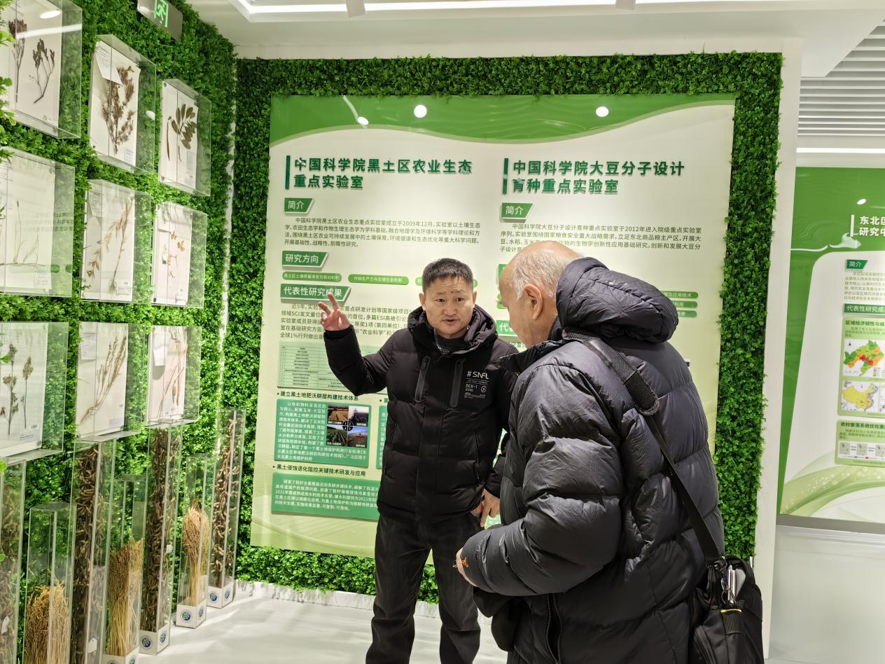 報(bào)告會后,在黃迎新研究員的陪同下,Cory Matthew教授參觀了黑土糧倉科技會戰(zhàn)指揮中心宣傳展示平臺,黃迎新研究員詳細(xì)介紹了黑土糧倉科技會戰(zhàn)實(shí)施以來,取得的重要成果和技術(shù)突破。