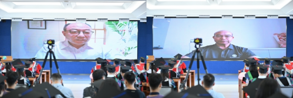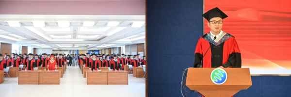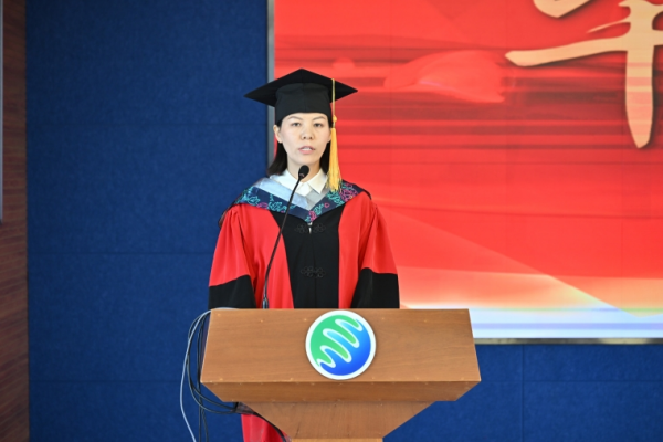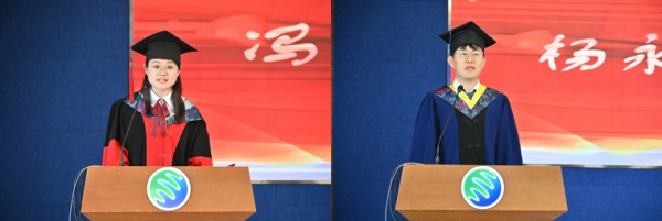 博士畢業(yè)生馮明銘、碩士畢業(yè)生楊永傳代表全體博士和碩士畢業(yè)生致畢業(yè)感言。兩位畢業(yè)生代表回顧學習生涯、分享科研感悟,感念師恩,并表達了對母校的不舍之情。經過這段求學生涯的錘煉,他們在挫敗中成長,在堅持中奮發(fā),他們自立自強,奔赴夢想。