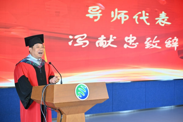 博士生導師馮獻忠研究員代表研究生導師在畢業(yè)典禮上發(fā)言。他欣慰于畢業(yè)生們的成長,他寄語同學們,要腳踏大地、仰望星空,要滿懷信仰、志存高遠,要在屬于自己的蒼穹下,書寫出劃破天際的璀璨人生!