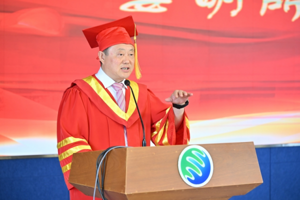 姜明在畢業(yè)典禮上致辭。他向圓滿完成學業(yè)的同學們表示誠摯的祝賀,向老師和家長朋友們致以衷心的感謝,并以“厚植黑土擔使命 賡續(xù)創(chuàng)新譜新篇”為主題,給同學們上了在東北地理所的最后一堂課。他希望畢業(yè)生要弘揚“黑土精神”,永葆艱苦奮斗本色,要保持“千磨萬擊還堅勁”的定力,傳承“板凳甘坐十年冷”的堅守,希望畢業(yè)生像我們培育的東生大豆一樣,把根深深扎進泥土,把枝葉高高伸向藍天;以“功成不必在我”的精神境界和“功成必定有我”的歷史擔當,在實現(xiàn)高水平科技自立自強的偉大實踐中貢獻青春力量。
