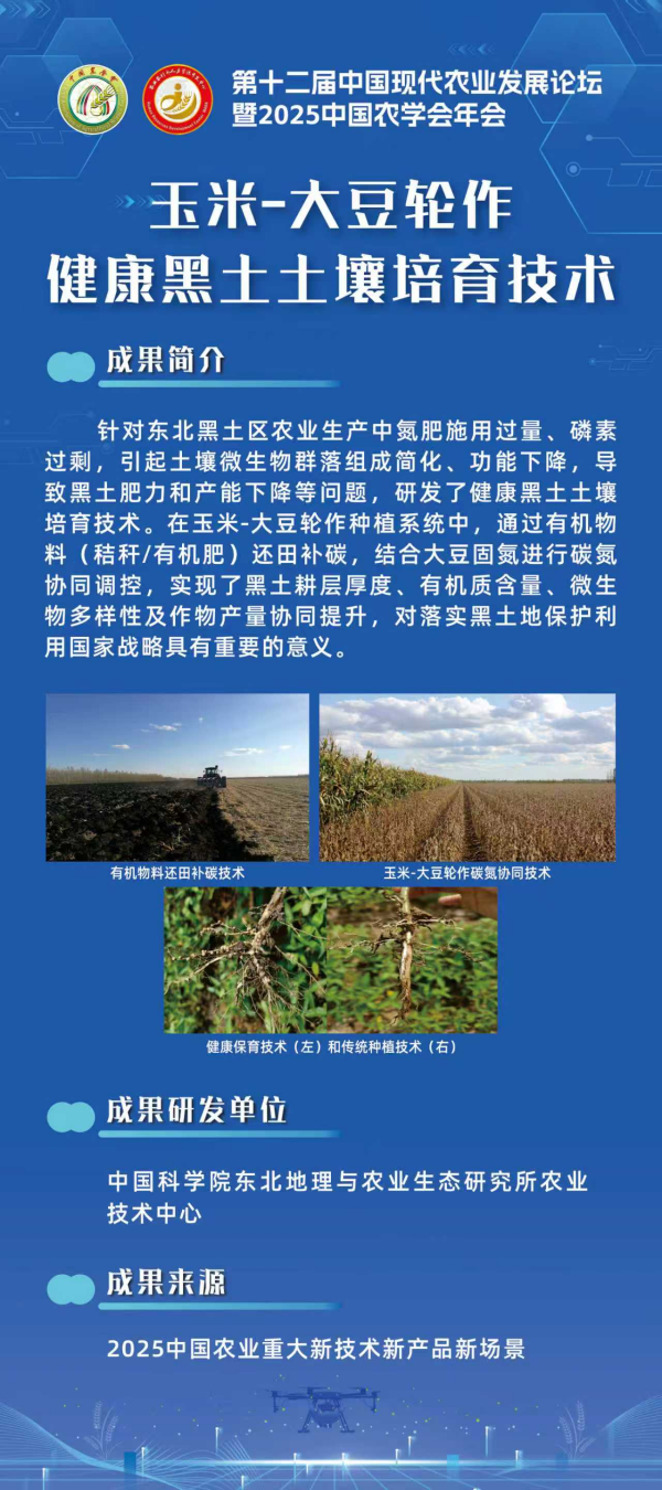 玉米-大豆輪作健康黑土土壤培育技術入選2025年中國農業(yè)重大新技術新產(chǎn)品新場景
