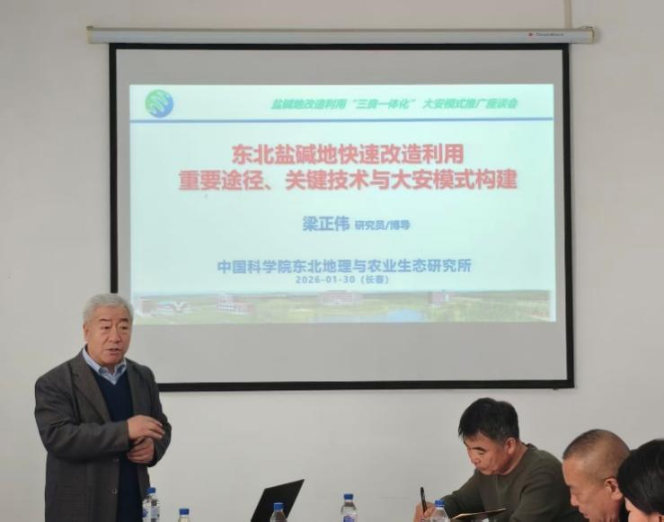 2026年1月30日,中國科學(xué)院東北地理與農(nóng)業(yè)生態(tài)研究所(以下簡稱“東北地理所”)在長春成功舉辦鹽堿地“三良一體化”高效治理與綜合利用大安模式院地合作推廣座談會。會議旨在總結(jié)推廣以科技創(chuàng)新驅(qū)動鹽堿地改造的成熟經(jīng)驗,凝聚院地合力,為吉林省“千億斤糧食”產(chǎn)能建設(shè)工程提供堅實支撐。座談會由王明明副研究員主持。