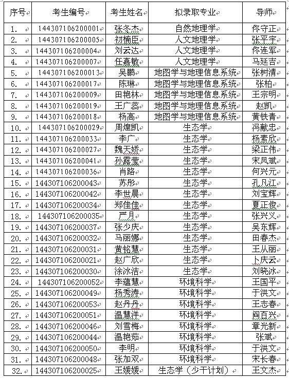 按照《教育部辦公廳關(guān)于做好2017年招收攻讀博士學(xué)位研究生工作的通知》(教學(xué)廳〔2017〕2號)精神和《中國科學(xué)院大學(xué)關(guān)于做好2017年秋季入學(xué)博士研究生錄取工作的通知》(校發(fā)招字〔2017〕42號)精神,本著“德智體全面衡量、擇優(yōu)錄取、保證質(zhì)量、寧缺毋濫”和“公平、公正、公開”的原則,東北地理所組織了2017年博士研究生入學(xué)考試。本次博士研究生入學(xué)考試方式為“申請-審核”制,對考生的德、智、體等方面和綜合素質(zhì)及能力進(jìn)行了全面的考核。經(jīng)東北地理所招生工作領(lǐng)導(dǎo)小組研究決定,現(xiàn)將2017年博士研究生擬錄取名單公示如下: