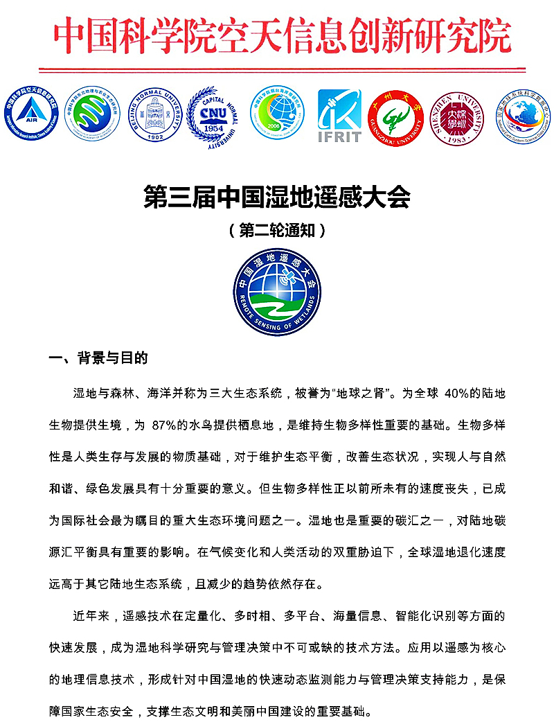 第三屆中國濕地遙感大會(第二輪通知)
