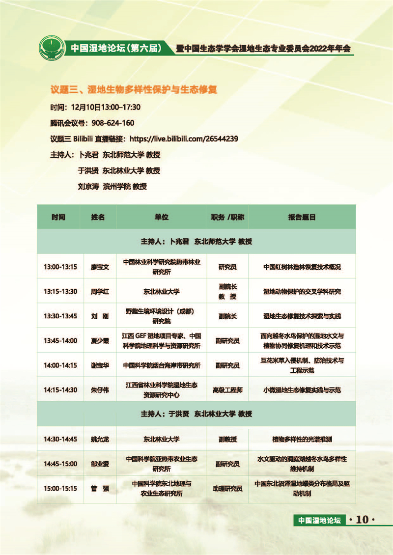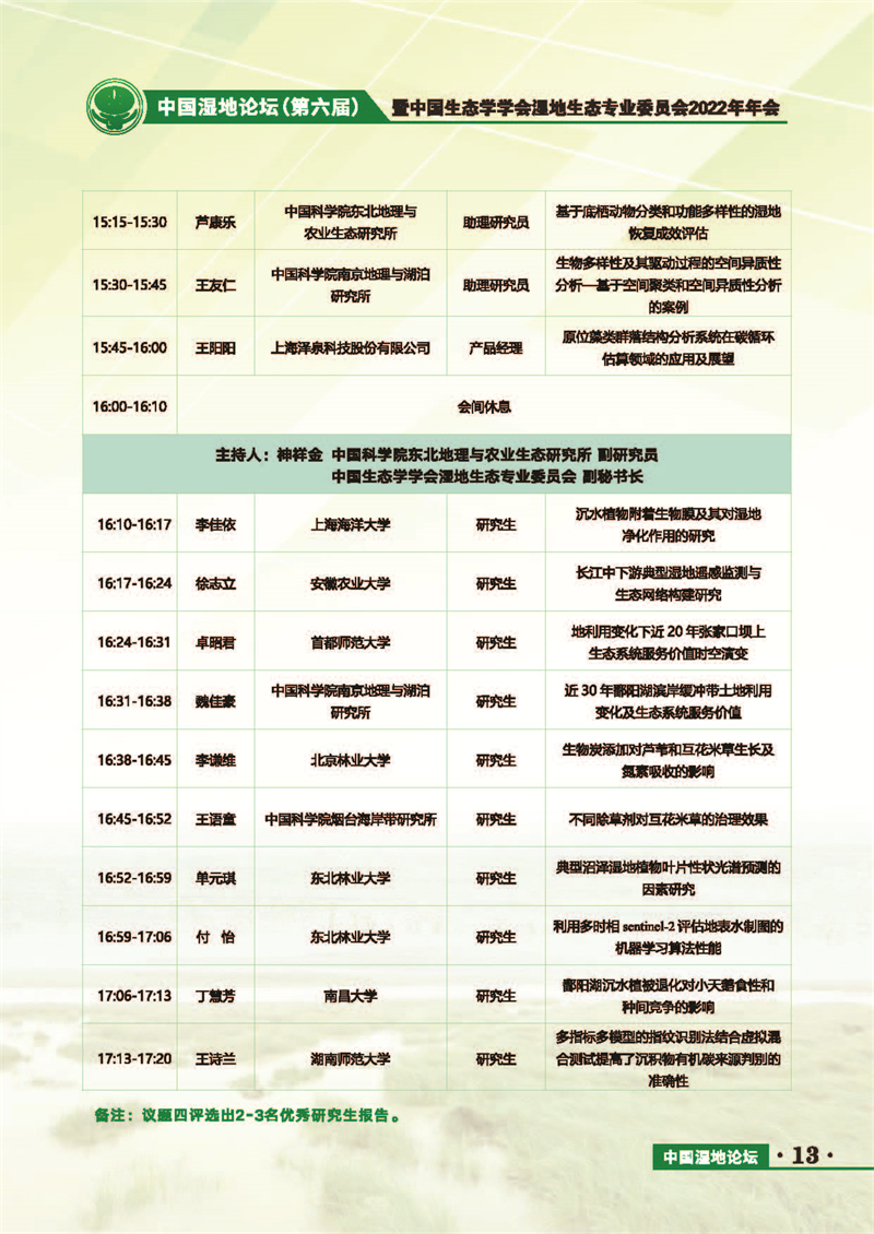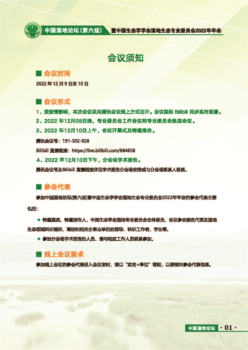 中國(guó)濕地論壇(第六屆)暨中國(guó)生態(tài)學(xué)學(xué)會(huì)濕地生態(tài)專(zhuān)業(yè)委員會(huì)2022年年會(huì) 會(huì)議手冊(cè)