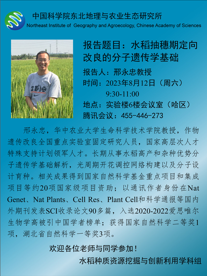 水稻抽穗期定向改良的分子遺傳學基礎-邢永忠 教授
